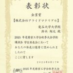 - 大学院本コースの修士課程学生が学会講演会で企業賞を受賞大学院 先端理工学研究科 機械工学・ロボティクスコース,修士課程学生の鈴木翔太さん(指導教員:小川圭二教授)が,「2025年度精密工学会秋季大会学術講演会学生研究発表会」において,「企業賞」を受賞しました. 受賞概要受賞 […]