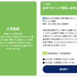 - 坂上教授が「夢ナビ講義 研究室訪問」をオンラインで実施夢ナビライブ 2025の「夢ナビ講義 研究室訪問」(企画フロムページ株式会社)で,2025年10月5日に本課程の坂上憲光教授が水中ドローンに関する研究内容と研究室の紹介をオンラインで行いました.その中で,水中構造物の点検 […]