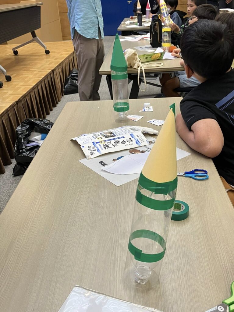 完成したロケットを広い会場で打ち上げると、歓声があがり、子どもたちは「どうすればもっと遠くまで飛ばせるか」を自分なりに工夫しながら、夢中で取り組んでいました。